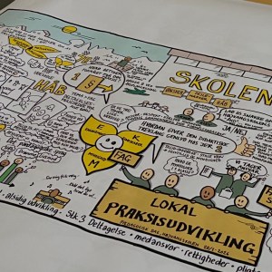 Kan du visualisere vores lokale praksisudvikling på skolen? Ja, hvor stort skal jeg tegne? Vi vil gerne hen over de kommende frem til en mange meter lang frise i personalerummet som skaber nysgerrighed og dialog om vores udvikling.